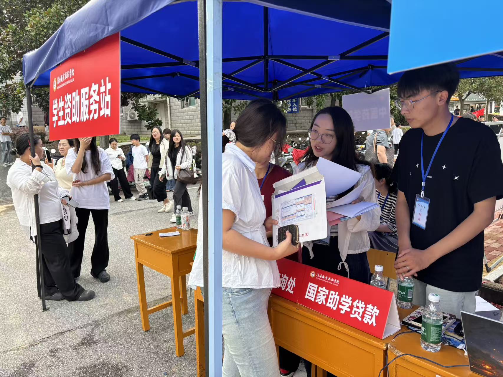 为全面落实国家资助政策,切实保障家庭经济困难新生顺利入学,beat365官网在学校资助中心的统一指导下,于迎新现场设立了“学生资助服务处”,集中为2025级新生及家长提供全方位、一站式的政策咨询与业务办理服务,传递学校关怀,消除后顾之忧。