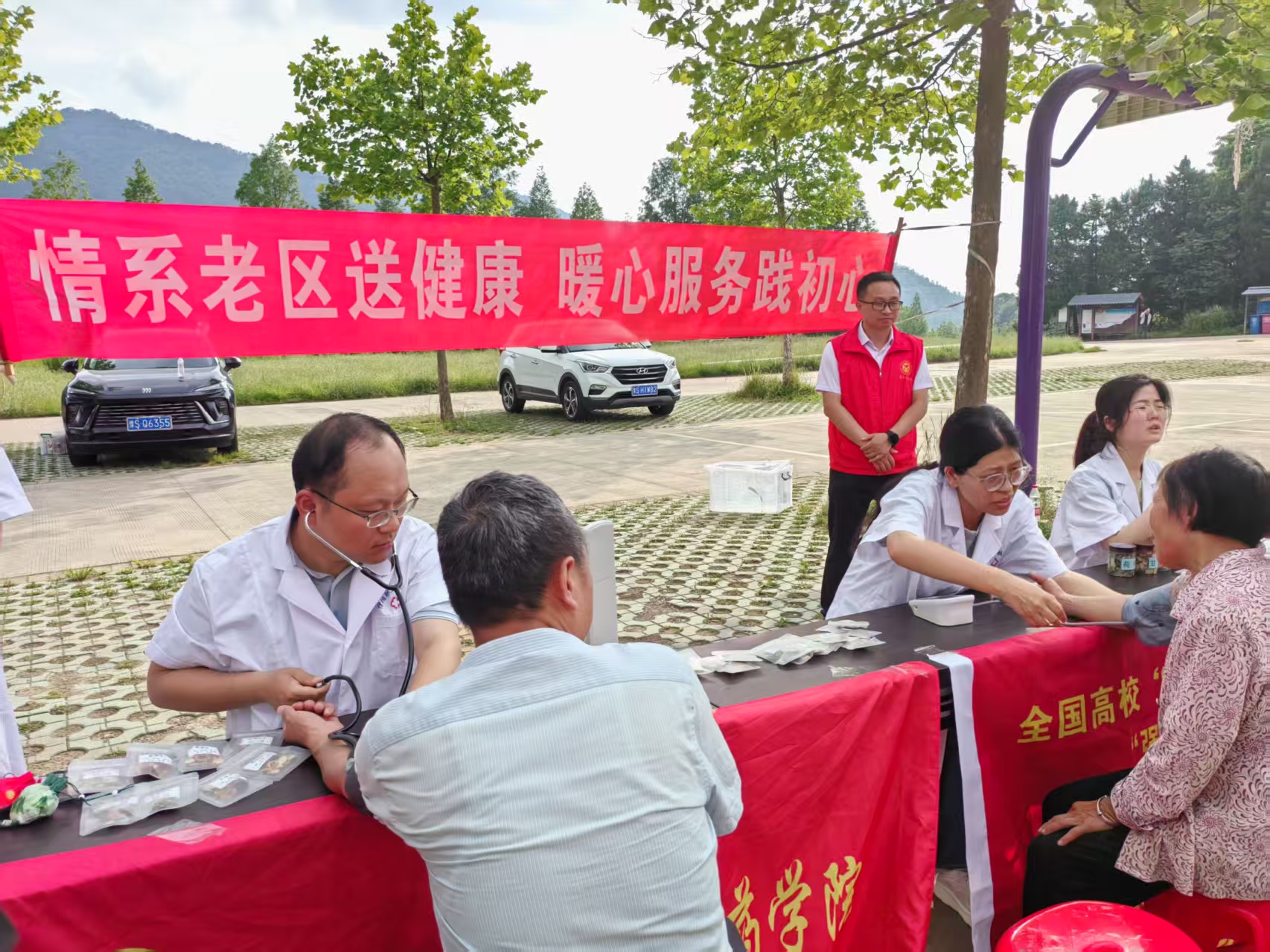 为践行大别山精神、推动中医药文化传播,服务革命老区群众,beat365英国官网网站“双带人头”教师党支部书记“强国行”专项行动团队于近日走进大别山老区----信阳市商城县黄柏山百战坪小学及林场新村,以“情系老区送健康 暖心服务践初心”为主题,通过开展“知识科普、实践体验、健康惠民”三项中医药文化宣传与志愿服务活动,惠及老区儿童与居民百余人。