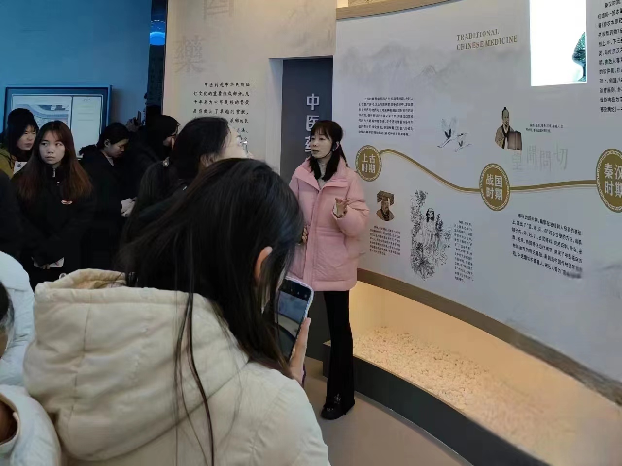 为了大力弘扬传统中医药文化,提升大学生的科学素养,12月中旬,中药教研室和本草社联合举办了为期一周的“以科技之力,传中药之采”主题参观活动,22级中药和药学专业全体同学参加。杨珍珍、尚朝利和张婉晴老师分别担任讲解员。