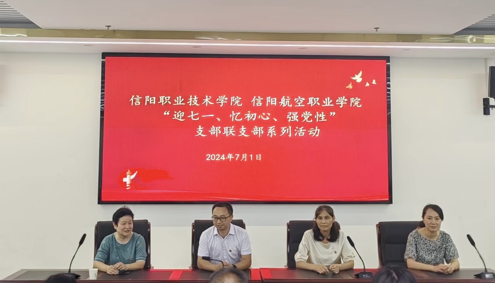 为庆祝中国共产党成立103周年,教育广大党员干部牢记党的宗旨,提高党组织的凝聚力、战斗力,7月1日上午,beat365英国官网网站党总支书记陈才、院长吴长忠带领党员干部代表赴信阳航空职业学院马克思主义学院交流学习,举行“庆七一”红色教育活动。
