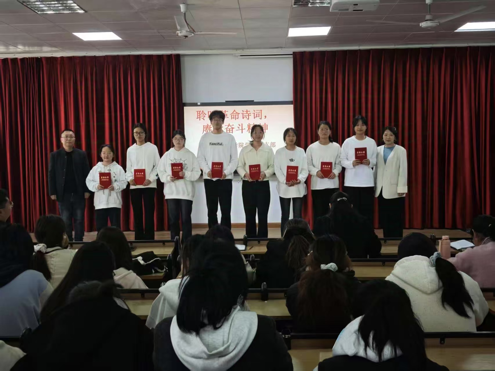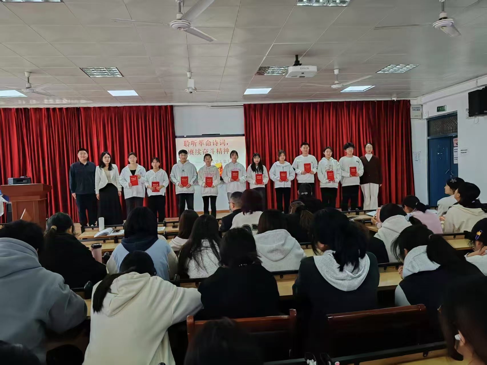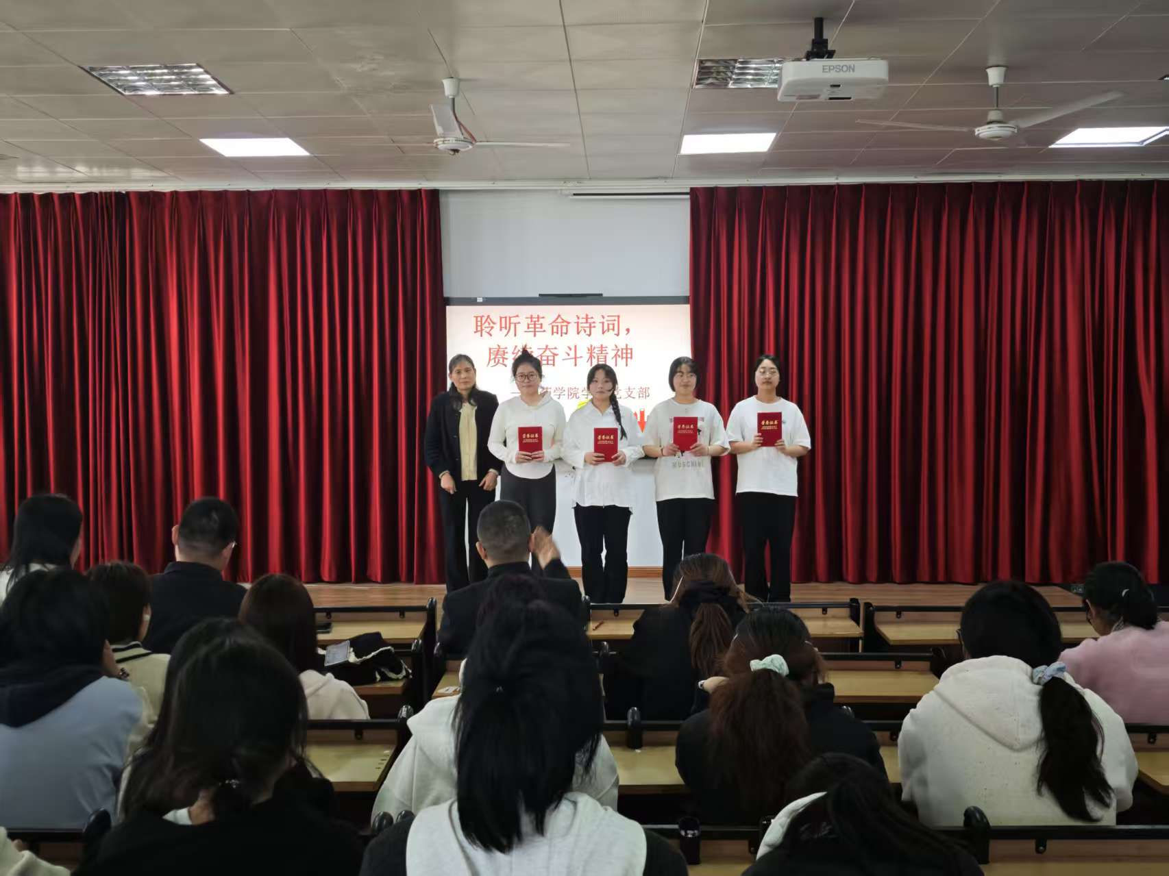 2025年4月1日,beat365英国官网网站学工党支部在8401多媒体教室举办“聆听革命诗词,赓续奋斗精神”主题朗诵比赛,以红色经典浸润青年心灵,用诗意传承激活奋进力量。