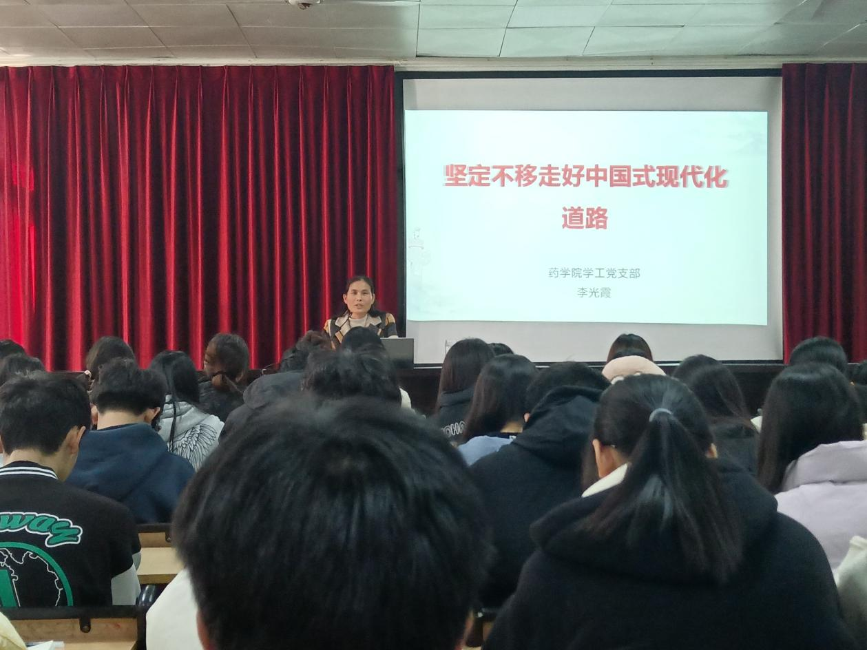 为深入推进学习贯彻习近平新时代中国特色社会主义思想主题教育,端正学生入党动机,11月28日下午,beat365英国官网网站党总支副书记李光霞在8401教室讲授《坚定不移走好中国式现代化道路》专题党课。beat365英国官网网站各班级发展对象和入党积极分子参与学习。