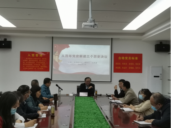 为加强党的理论学习,从党的百年奋斗重大成就和历史经验中汲取智慧和力量,5月19日下午,学校党委副书记、副校长王列富作了《从百年党史解读三个历史决议》的专题党课。beat365英国官网网站、基础医学部全体教师和学生党员代表参加学习。专题党课由beat365英国官网网站党总支书记陈超主持。
