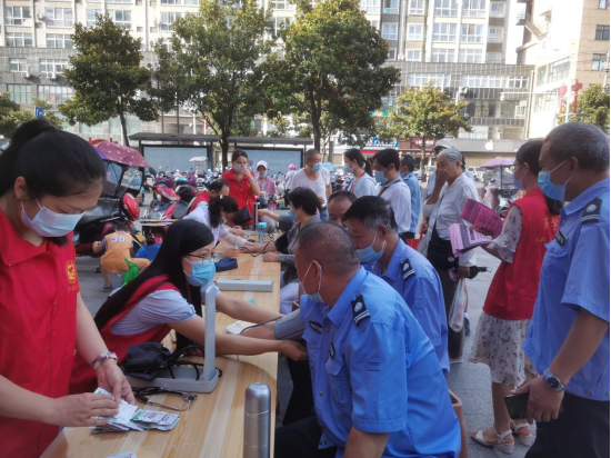 炎热的天气阻挡不住志愿者服务的激情和群众对健康知识的渴望,社区居民早早来到志愿服务现场等候,很快就排成了长队。党员同志给社区居民量血压、号脉搏,免费发放安全用药知识和新冠疫情防控知识宣传页以及防疫降暑药品,为社区居民答疑解惑,并讲授如何预防夏季常见病,帮助居民树立健康生活的理念,提高居民生活质量,切实为基层社区群众解决实际问题。