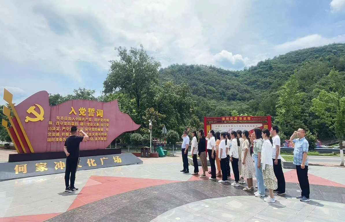 为庆祝中国共产党成立102周年,弘扬革命精神,传承红色基因,接受革命传统教育,6月28日,beat365英国官网网站党总支书记陈超、院长吴长忠带领全体教师党员、入党积极分子和学生代表前往何家冲二十五军长征出发地开展红色教育活动。