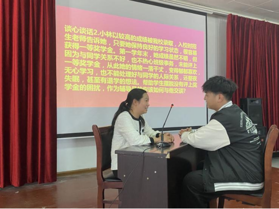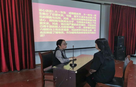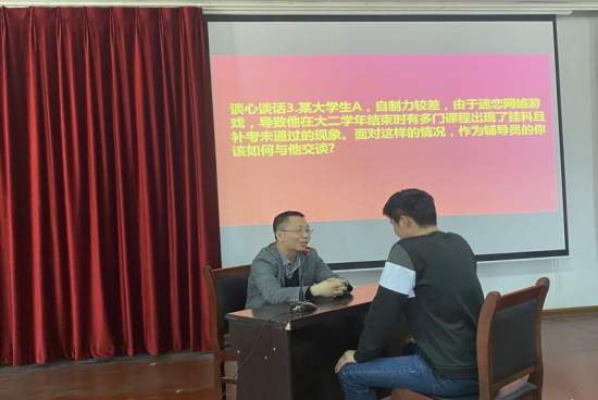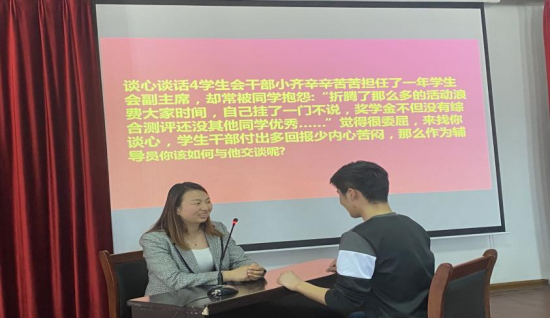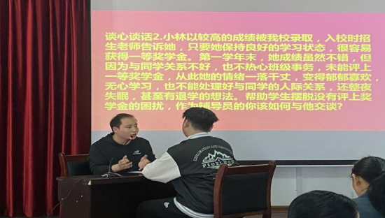 在谈心谈话环节,通过模拟辅导员与学生日常沟通交流的场景,考察辅导员们在帮助学生答疑解惑、化解矛盾、价值引领和心理疏导等方面的方法与能力。