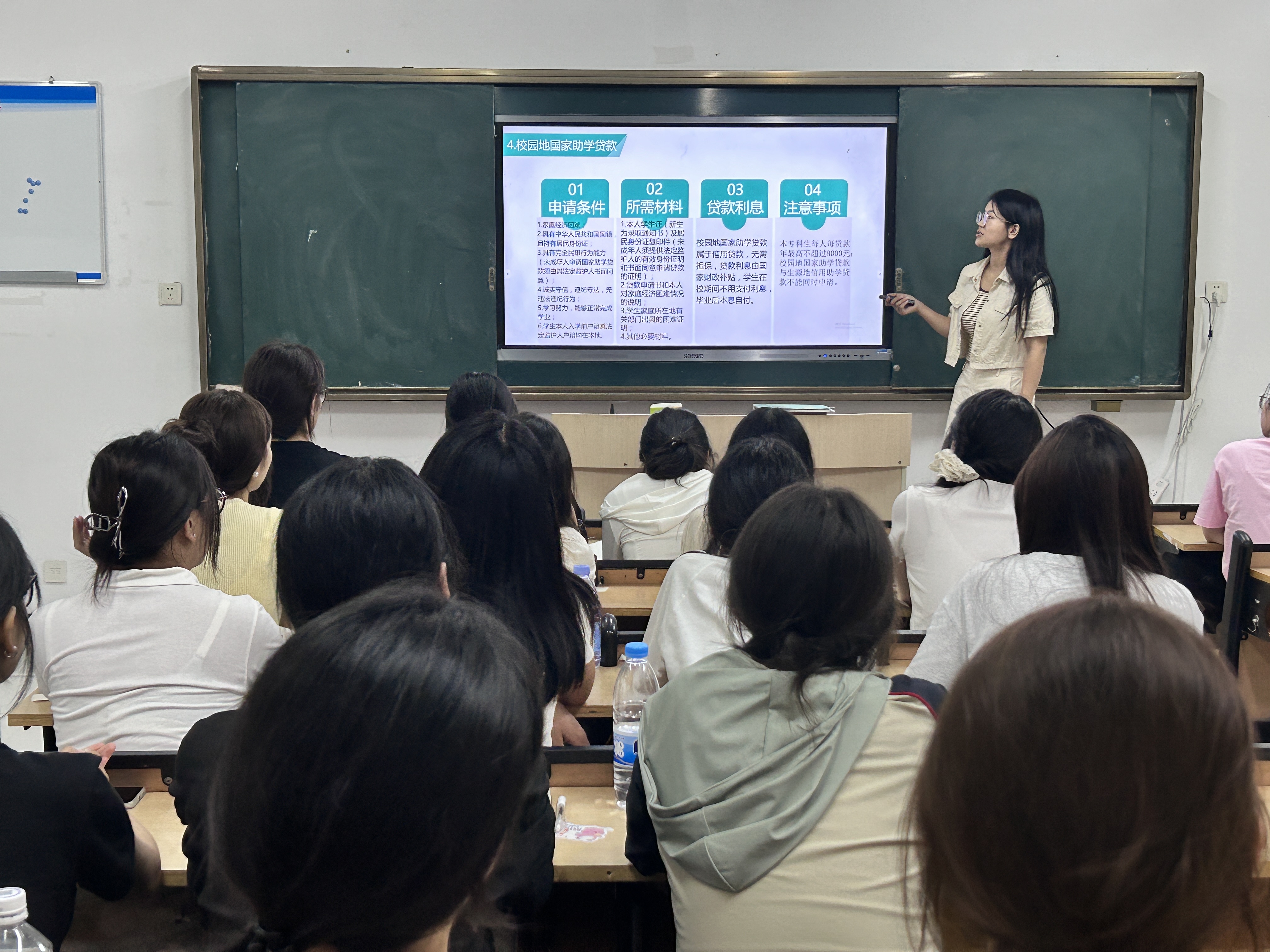 在此次宣讲活动中,各班辅导员成为了连接政策与学生之间的“桥梁工程师”。他们利用主题班会这一平台,将资助政策的温暖与力量传递给每一位学生。辅导员们首先对国家及学校的资助政策进行了全面而细致的解读,从申请条件、资助标准到申请流程,一一为学生们答疑解惑。他们采用PPT展示、视频播放等多媒体手段,使枯燥的政策条文变得生动易懂,让每位学生都能轻松掌握关键信息。在班会上,辅导员们还鼓励学生积极提问,针对每个学生的具体情况给予个性化指导。这种面对面的交流方式,不仅加深了学生对资助政策的理解,也让他们感受到了来自学校和老师的关怀与支持。