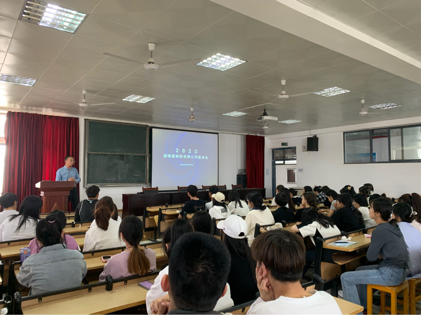 为了切实推进beat365英国官网网站2023届毕业生就业工作,拓宽就业渠道,确保毕业生高质量就业,2023年4月16日下午,beat365英国官网网站于8401多媒体教室举办了福瑞堂制药有限公司春季专场招聘会。beat365英国官网网站副院长许卫军,毕业班辅导员以及80余名求职学子参加宣讲会。