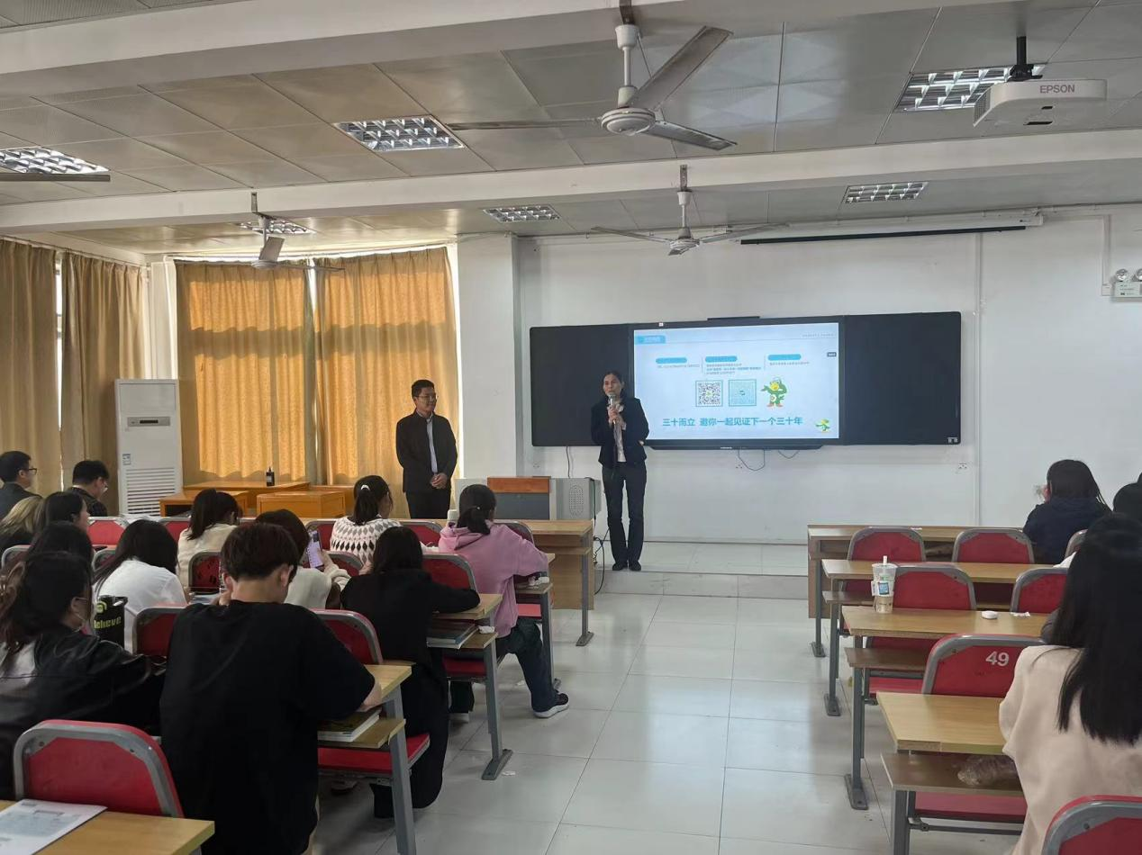 公司河南省片区经理闫磊向在场的学子们展示了公司在医药行业的地位以及未来的发展规划。他详细介绍了公司的研发实力、产品线以及市场布局,让beat365英国官网网站的同学们对华邦制药有了更加全面的认识;他分享了自己在公司的工作经历,特别是在新药研发、临床试验以及市场推广等方面的经验和心得。随后,他从职业生涯规划、成长路径对同学们进行了培训,鼓励beat365英国官网网站的同学们要扎实专业知识,勇于创新实践,为医药事业贡献自己的力量。