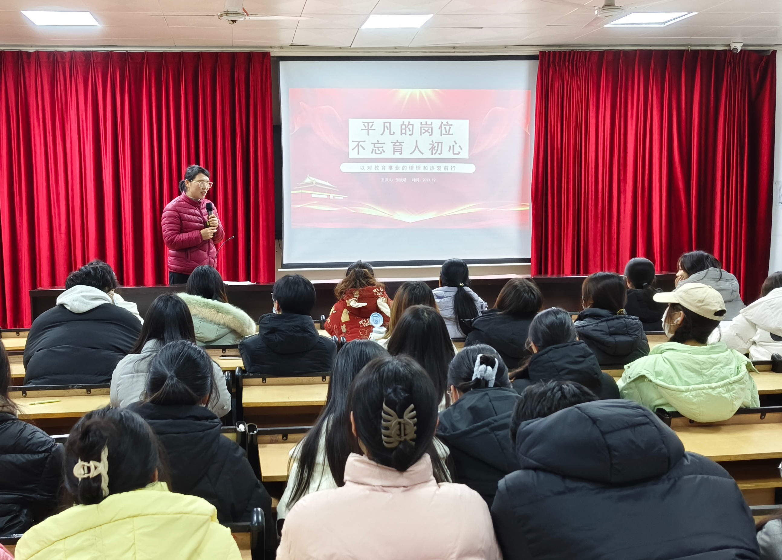 随后,教工党支部张婉晴老师以《平凡的岗位,不忘育人初心》为题分享自身心得体会,她认为教师应以立德树人作为根本任务,用心浇灌、用爱育人,不断提升自身综合素质,发挥先锋模范作用,争做“四有”好老师、育人“大先生”。