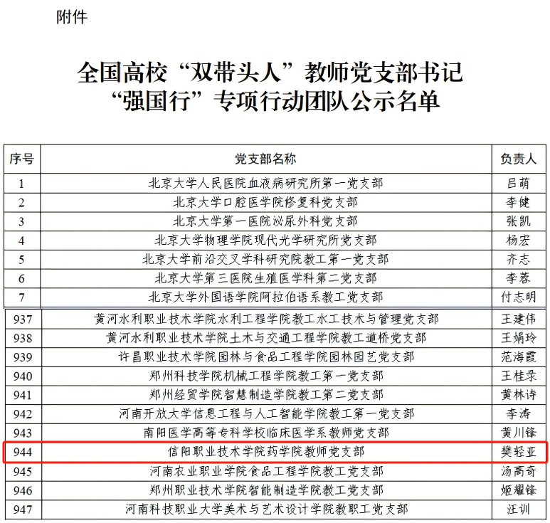 beat365官网樊轻亚教授“双带头人”书记工作室入选全国高校“双带头人”教师党支部书记“强国行”专项行动团队公示名单